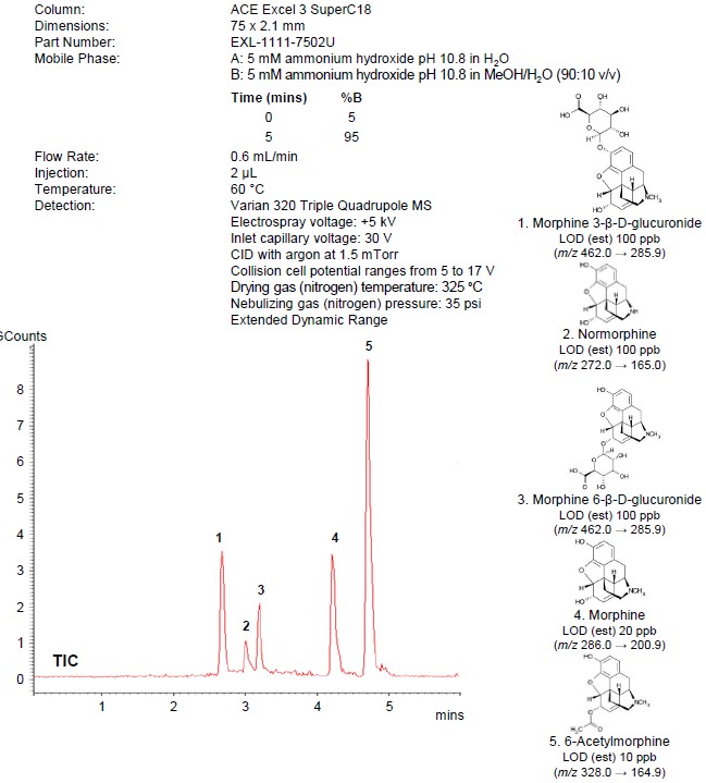 針對(duì)不同酸堿性的化合物,ACE設(shè)計(jì)了三款HILIC柱(A,B和N),實(shí)現(xiàn)不同的選擇性。比如:
