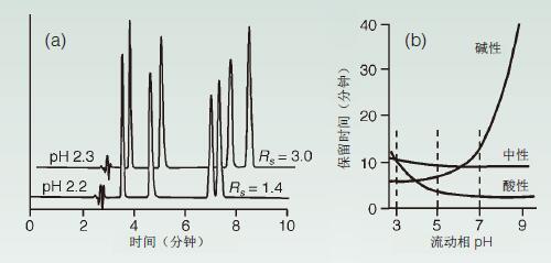 圖2 流動(dòng)相pH值的微小變化對(duì)分離的影響。