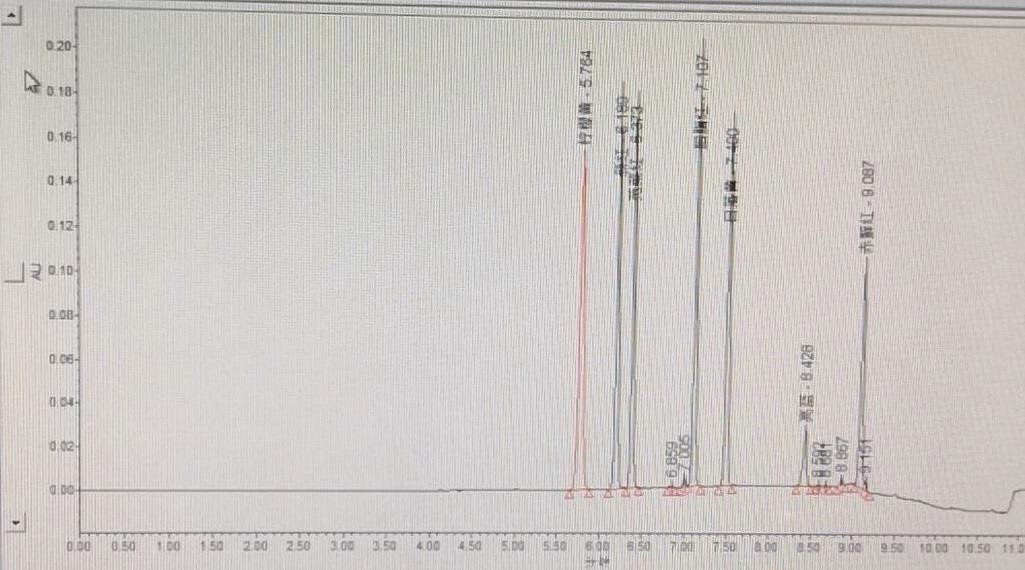 方法:GB 5009.28-2016 色譜柱:Titank C18 5μm 150×4.6mm(貨號:FMF-5560-EONU) 流動(dòng)相:甲醇-乙酸銨溶液(0.02mol/L)(5:95)
