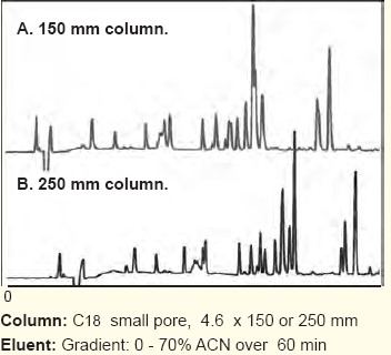 但是對(duì)于小分子多肽,往往長柱比短柱的分離度大,這點(diǎn)類似化學(xué)小分子。