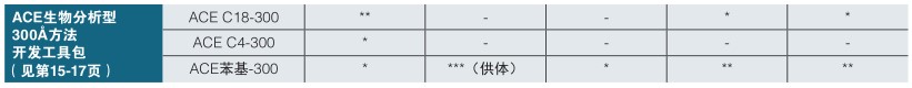 4,對(duì)于色譜柱固定相的選擇方面,ACT公司推出了生物分析方法開發(fā)包,主要提供三種固定相,C18-300, C4-300,Phenyl-300,提供三種不同的分離選擇性作為主流用柱。