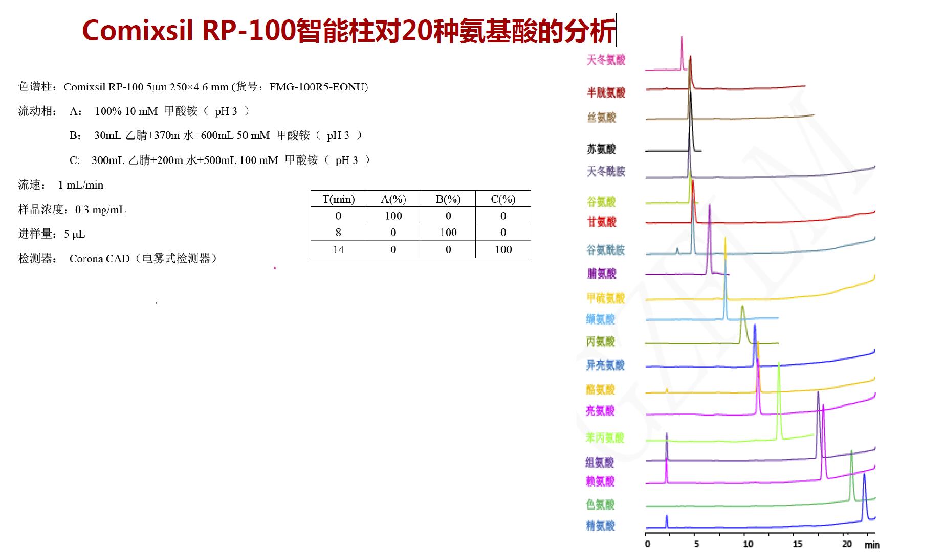 Comixsil RP-100智能柱對(duì)20種氨基酸的分析