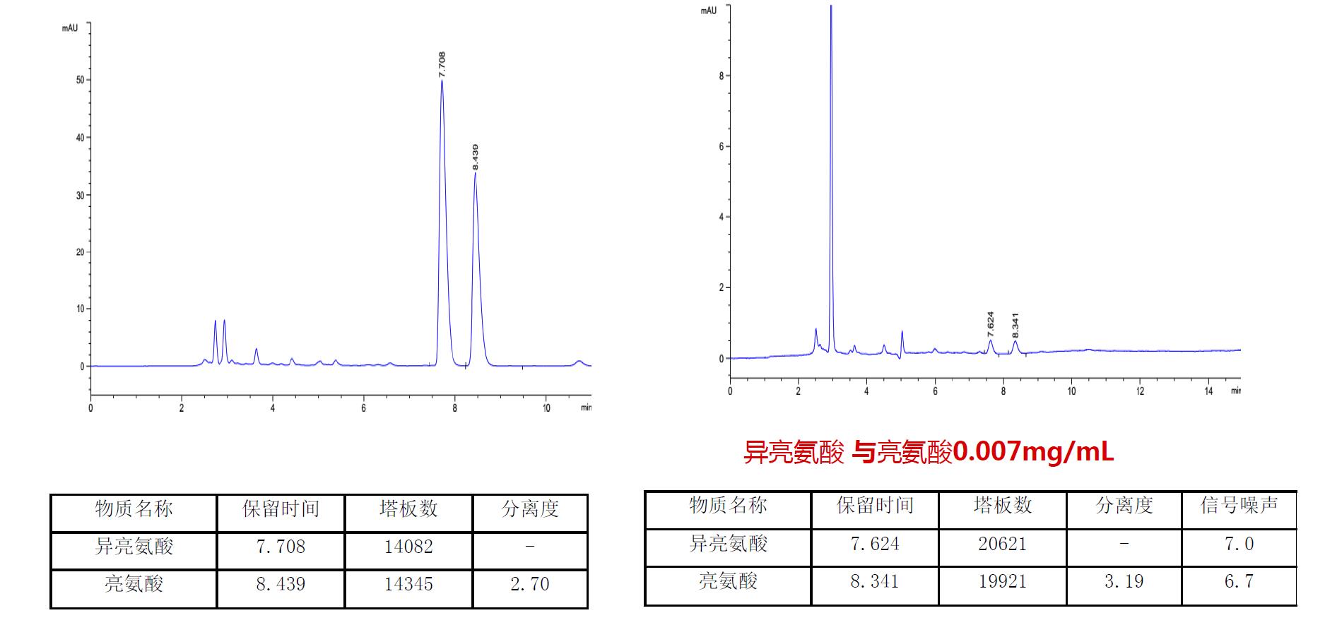 SuperLu C18 AQ對(duì)異亮氨酸與亮氨酸的分析UV檢測(cè)器