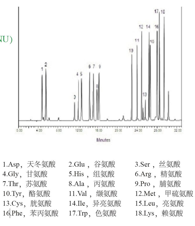 這種分析氨基酸的方法基于柱前衍生步驟,衍生化反應(yīng)是在堿性條件下完成的,采用異硫氰酸苯酯和游離氨基酸反應(yīng)生成的 PTC- 氨基酸衍生物可于 UV 254 nm 處被檢測到。
