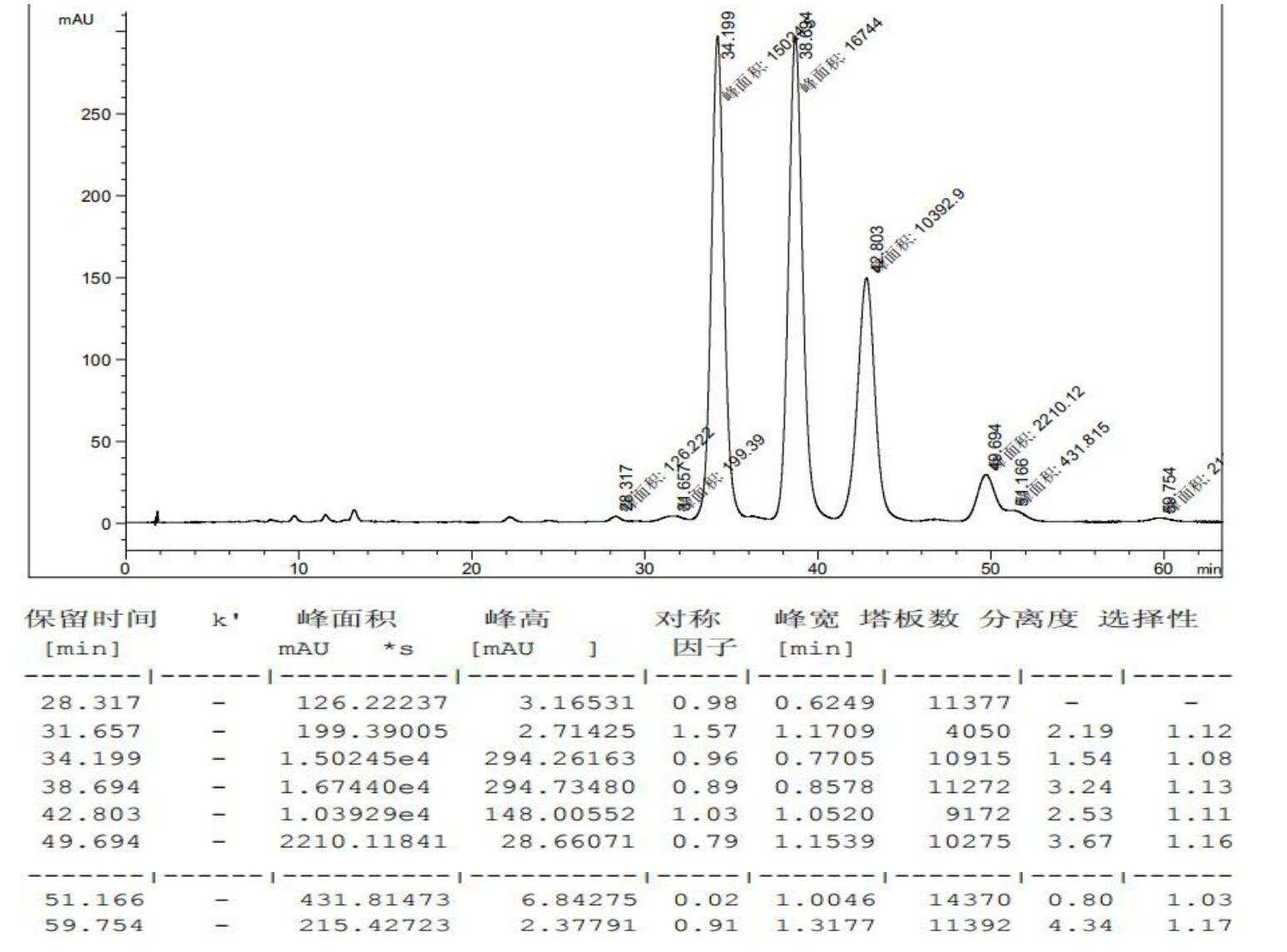 流動(dòng)相: 乙腈-甲醇-二氯甲烷-冰醋酸(50:50:0.3:0.3)