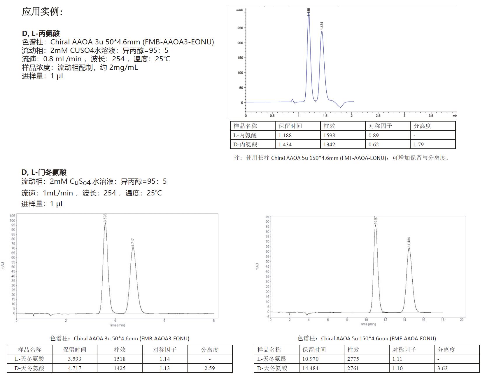 • Chiral AAOA 氨基酸與有機酸手性柱 Chiral AAOA手性柱是以高純度具有良好機械穩定性的硅膠為基質,通過新型工藝鍵合D-青霉胺于十八烷基柱上而成的配體交換型手性柱。