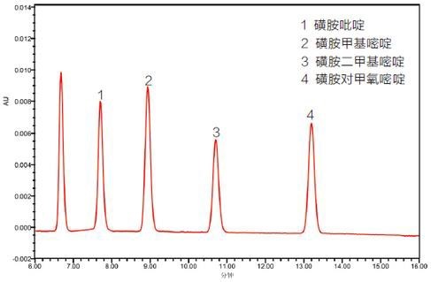 圖1 添加水平為0.2 mg/kg豬肉基質(zhì)中磺胺檢測色譜圖