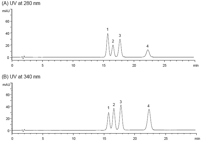檢測波長:(A)280nm; (B)340nm