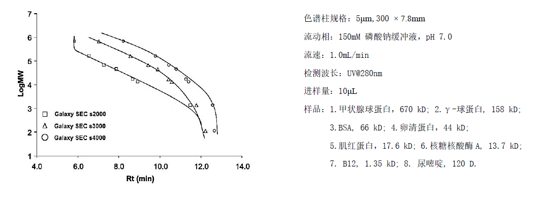 Galaxy 系列體積排阻色譜柱基于獨有的表面修飾技術,在5μm 高純度具有良好機械穩定